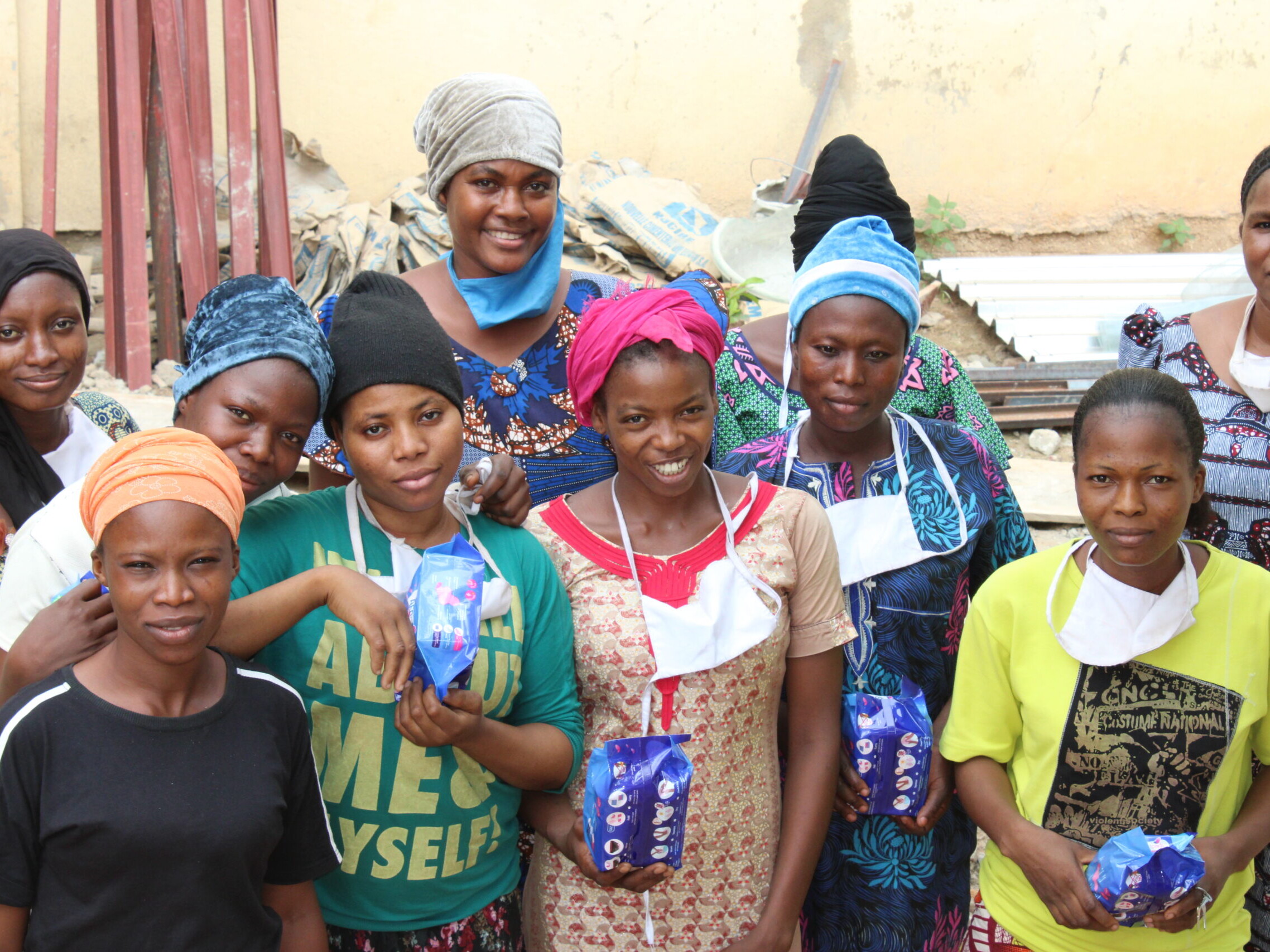 AFRIpads re-usable sanitary pads for women handed out to our factory staff at Afokantan
